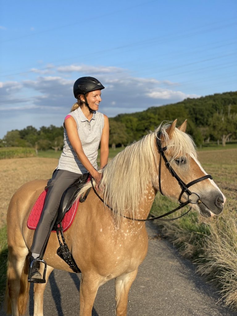 In meinem reitweisenübergreifenden Reitunterricht vermittle ich deshalb Wissen über die Biomechanik von Pferd & Mensch und lege besonderen Wert auf den Reitersitz; Gefühl und eine feine Hilfengebung. Unsere Gedanken und Gefühle sind dabei unsere erste Hilfe, darauf folgt der Körper und zuletzt das Equipment. Nur wenn wir unsere Instrumente kennen und „stimmen“ lernen, können wir eine feine & leichte Kommunikation mit unserem Pferd führen. Und so gelingt es uns, dass wir uns gemeinsam Schritt für Schritt weiterentwickeln können, ohne einander zu verlieren: Becoming One.